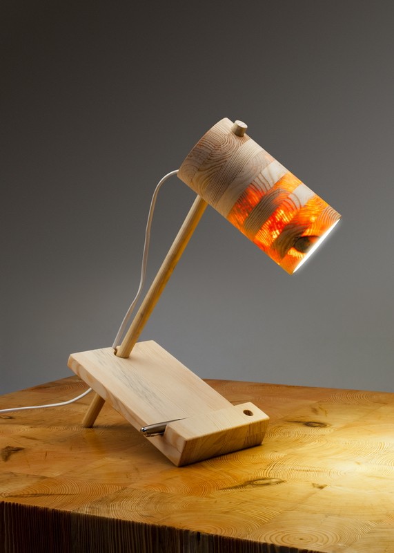 Czy kiedykolwiek, będąc dzieckiem, przykładałeś sobie lampę do dłoni by zobaczyć jej wnętrze? Teraz możesz zajrzeć do środka drewna – prześwietlić jego tkanki i poczuć ciepło płynące z żarówki poprzez drewnianą „skórę”. Światło przefiltrowane przez cienką warstwę drewna ma niezwykły, pomarańczowy kolor, który rozgrzewa przestrzeń dookoła.