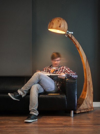 Przy wyborze materiału na lampę nie unikamy sęków, co pozwala na jego pełniejsze wykorzystanie, aby jak najmniej drzew zostało użytych do jej wytworzenia. Dzięki temu można uzyskać jeszcze bardziej naturalny wygląd, który idealnie wpasowuje się zarówno w nowoczesne jak i tradycyjne aranżacje. Źródłem światła jest dołączona w komplecie energooszczędna żarówka LED. Ta wydajna technologia daje wiele możliwości, które ułatwiają dopasowanie odpowiedniej barwy i nasycenia światła. Drewniana powierzchnia lampy pokrywana jest olejem naturalnym bądź lakierem. Posiada zgrabne kółka do jej bezproblemowego przemieszczania.