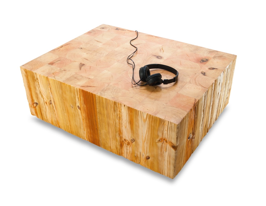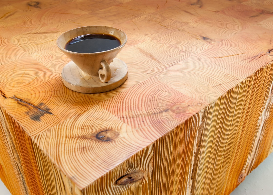 Stolik kawowy wykonany z bali sosnowych.